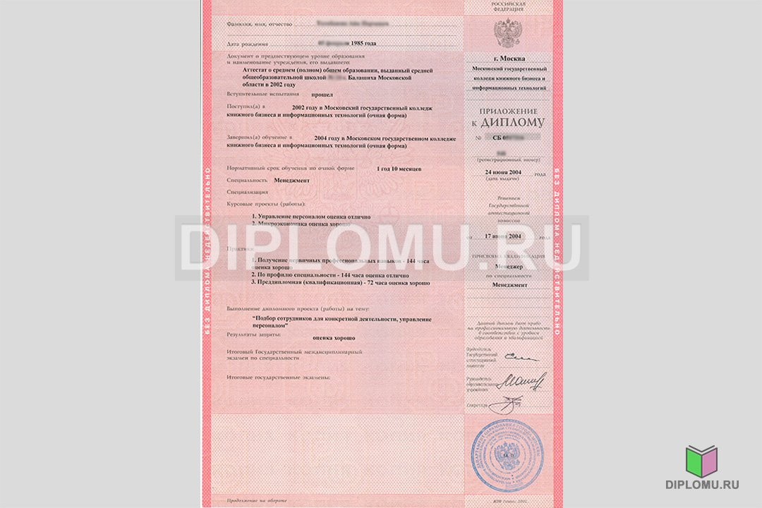 Купить диплом о среднем образовании 2004-2006